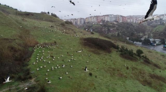 Leylek sürüsünün mola verdiği yerden yeniden göç etmeye başladığı anlar havadan görüntülendi. Her yıl 1 milyona yakın leyleğin göç güzergahı üzerinde yer alan İstanbul'un çeşitli noktalarında leylek sürülerine rastlamak mümkün. Havada süzülen ve dinlenmek için konan yüzlerce leylek beyaz ve siyah kanatlarıyla görsel şölen oluşturuyor.