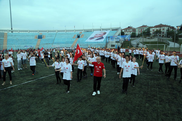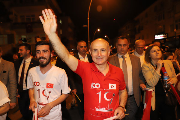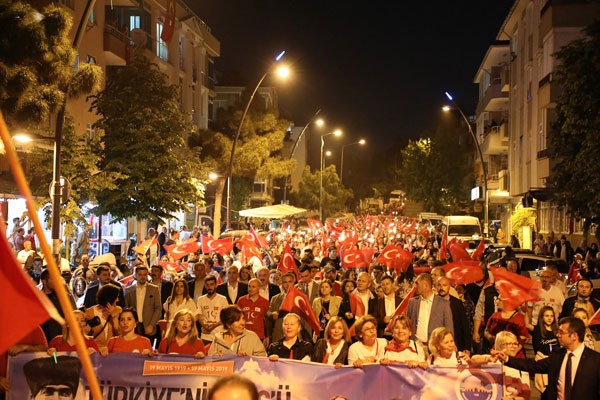 Vatandaşlar Başkan Akgün ile birlikte meşale ve bayraklarla belediye binasına yürüdü. Yaklaşık 8 kilometrelik güzergahta gerçekleşen korteje binlerce vatandaş Türk bayrakları ve Atatürk posterleri ile katılırken, 400 metre uzunluğundaki Türk bayrağını ise gençler taşıdı.