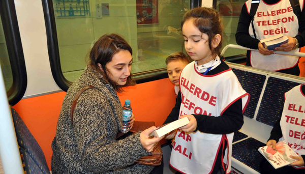 Bağcılarda Kaymakamlığın insanların daha çok kitap okumasını ve cep telefonlarına olan bağımlığığın azaltılmasını amaçladığı “Ellerde Telefon Değil, Kitap Olmalı” projesi hayata geçirildi. Bağcılar’da bulunan Karacaoğlan İlkokulu öğretmen ve öğrencileri Yenikapı-Kirazlı ve Yenikapı-Atatürk Havalimanı hattında sefer yapan metroya bindi. 13 öğretmen ile 30 öğrenci metroda telefonuyla ilgilenen kişilerin yanına gidip onlarla sohbet etti. Çocuklar, büyüklerine kitap okunma oranının düşük olmasından bahsedip onları kitap okumaya teşvik etti. Amaçlarını anlatan öğrenciler yayınevlerinden toplanan ve sahaflardan aldıkları kitapları metroda yolculara dağıttı.