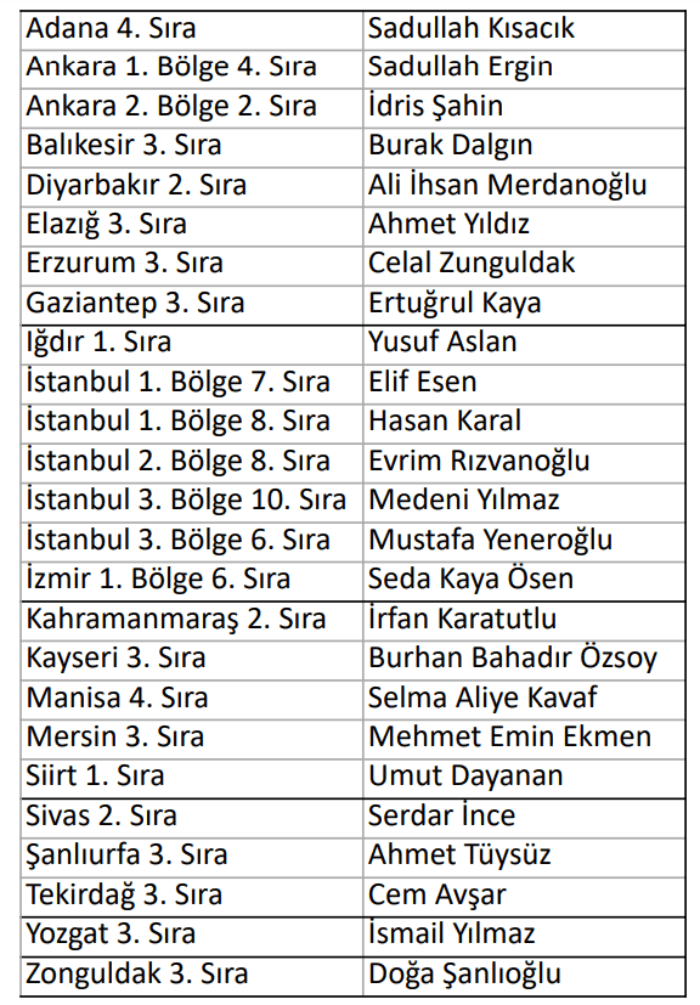 Buna göre eski AKP’li adalet bakanı Sadullah Ergin, DEVA Partisi kontenjanından CHP Ankara 1’nci bölge dördüncü sıradan aday oldu.