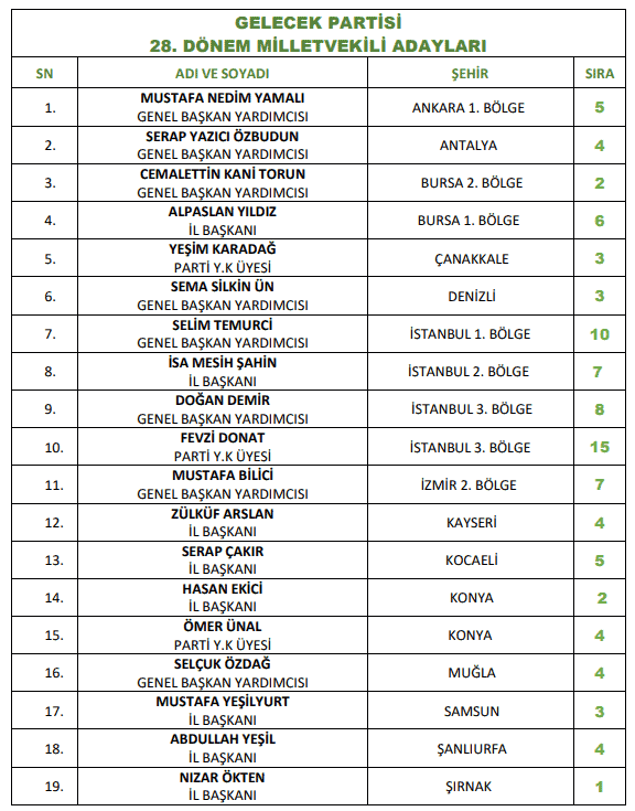 Seçime CHP listelerinden girecek Gelecek Partisi ve DEVA Partisi’nin milletvekili adaylarının tam listesi belli oldu.