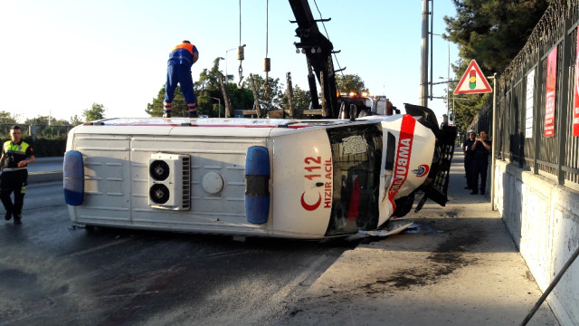 İstanbul Bakırköy'de hasta almaya giden ambulansın devrilmesi sonucunda ambulansta görevli 3 şahıs yaralandı.