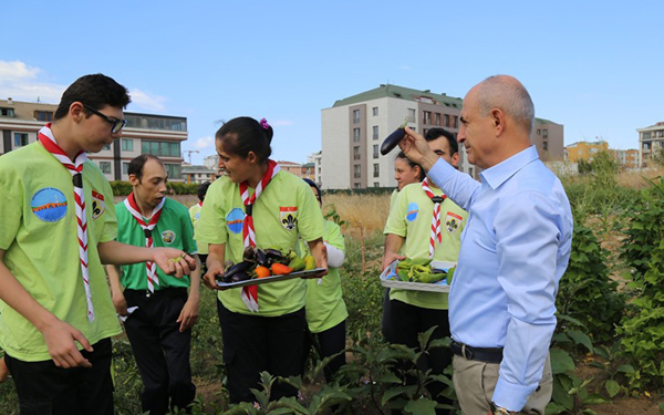 Büyükçekmece Belediyesi Gökkuşağı Dezavantajlılar İzcilik Kulübü ve Eğitim Merkezi’nde faaliyet gösteren hobi bahçeleri sayesinde kendi sebze ve meyvelerini yetiştiren engelli izciler, olgunlaşan meyve ve sebzeleri Başkan Akgün’le birlikte toplayarak yeni mahsuller ekti.