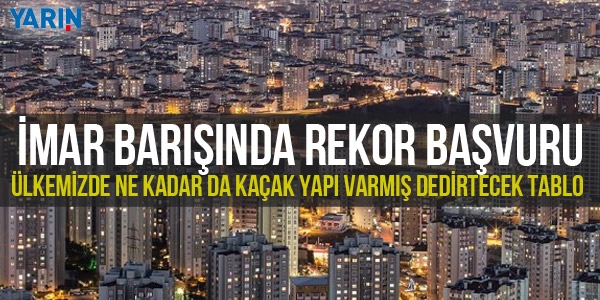 Sabah'tan Selçuk Demirel'in haberine göre, tarımsal üretim yapanların başvuru sayısı 165 bin 309 olarak dikkat çekerken, güneş enerjisi santrali alanlarında ise toplamda 137 enerji üreticisi İmar Barışı'na başvurdu. 4 milyon 351 bin 278'i konut sahibi ve 449 bin 681 bin işyeri sahibinin başvurduğu imar affı uygulamasında bugüne kadar 490 bin 923 yapı için "Yapı Kayıt Belgesi" 605 yapı için de kat mülkiyeti tapusu verildi. Düzenleme kapsamında Yapı Kayıt Belgesi için e-Devlet üzerinden 8 Haziran'da başlayan başvurular devam ediyor. Düzenlemede son başvuru günü 31 Ekim 2018 olarak belirlenirken, başvuru gerçekleştirildikten sonra ödenmesi gereken bedel de 31 Aralık 2018'e kadar yatırılabilecek.